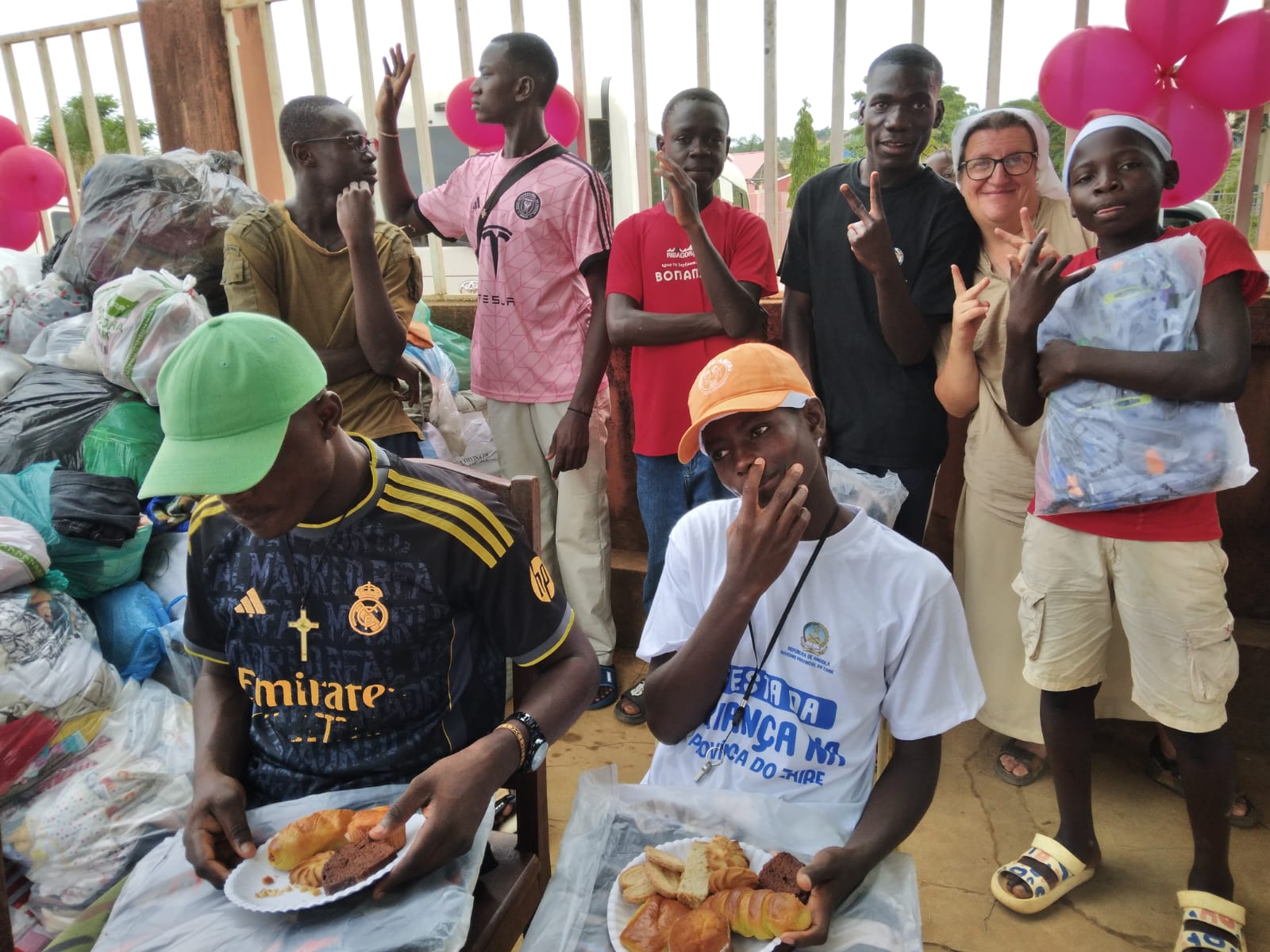 Abbiamo scelto alcune immagini della preparazione della festa (sabato 29 novembre) e della celebrazione — la Santa Messa a Mfumu e poi a Casa São José — per raccontare questo: una comunità che si muove, che si dona, che si mette in cammino per accogliere e celebrare. Grazie a tutte le “mamá” che hanno fatto parte della preparazione culinaria… Quanto lavoro!!! Tutto per celebrare un Amore più grande che ci unisce e ci invita alla gratitudine.
