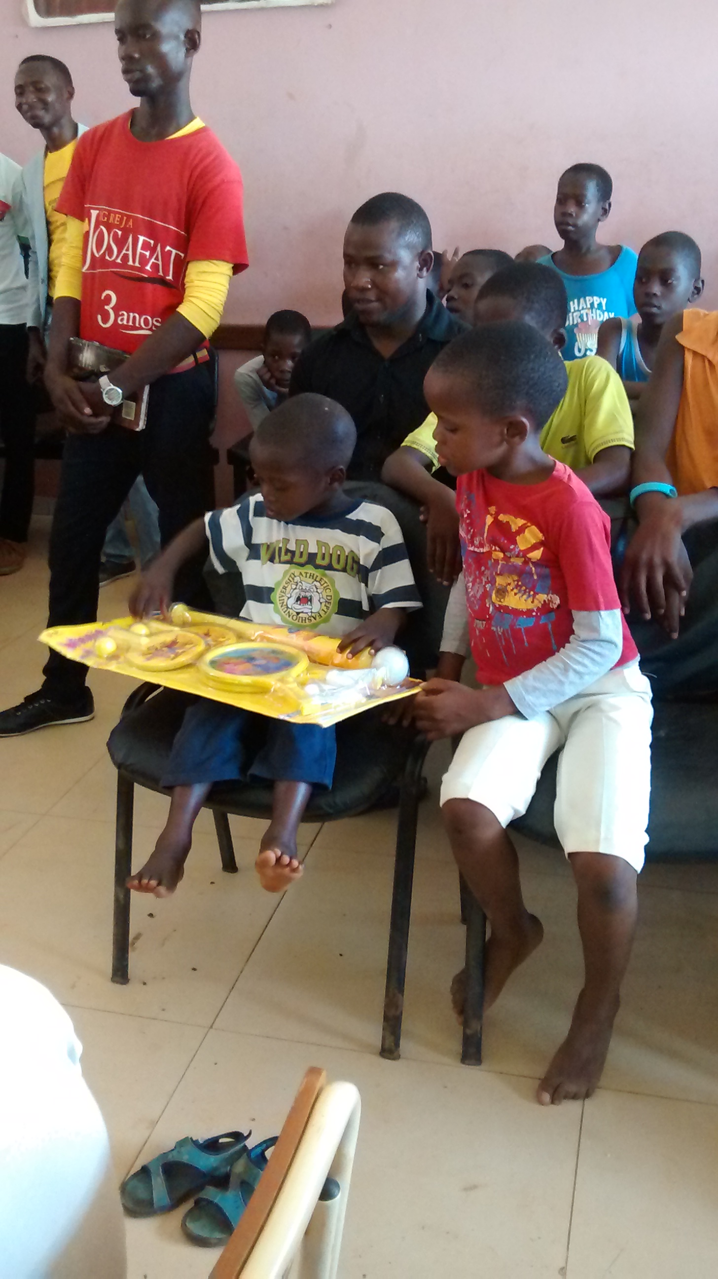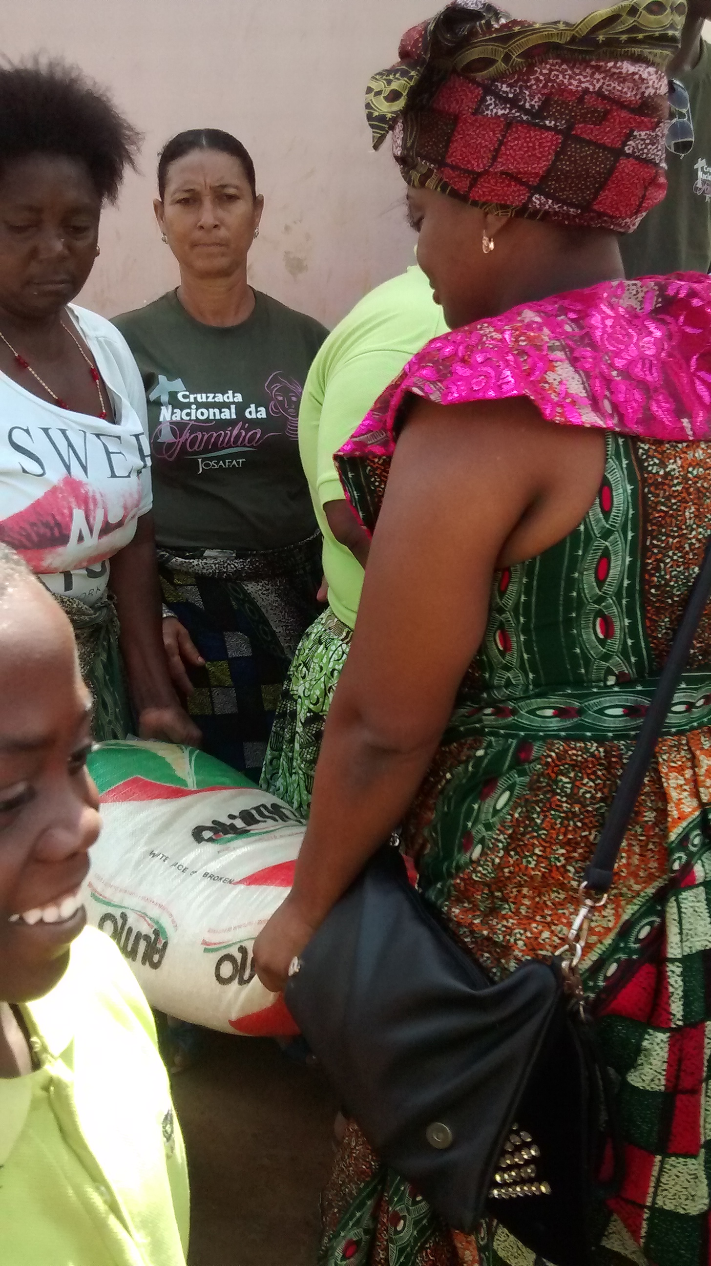 prima un ragazzo del Centro aveva detto al responsabile: ” a comida è pouca … il pasto è poco … abbiamo fame!” e il frate in risposta: “lo so, ma c’è la crisi!” … Il Signore ha ascoltato il grido dei suoi piccoli ed è intervenuto per la bontà di alcuni fratelli nella fede appartenenti alla Chiesa Evangelica di San Giosafat che ha sede a Luanda. Il loro responsabile li ha mandati proprio a M’Banza Congo, dai bambini del Centro che già avevano ricevuto la loro visita lo scorso anno, con un pullman carico di prodotti alimentari, soprattutto riso e latte, alcuni giochi, del materiale scolastico e qualche pacco di vestiti.