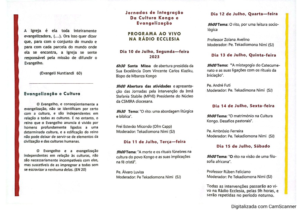 Con questo spirito si celebrano in questi giorni le Giornate di Integrazione della Cultura Kongo e dell’Evangelizzazione. Si svolgono dal vivo su Radio Ecclésia.
