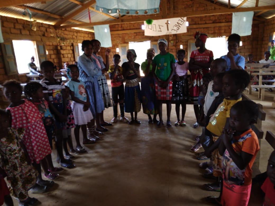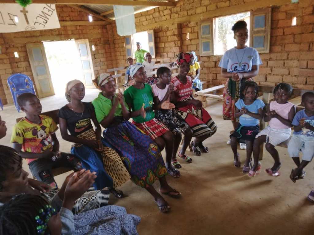 Foto: le aspiranti durante la Catechesi in “uma aldeia” (villaggio) nella periferia di M’Banza Congo.