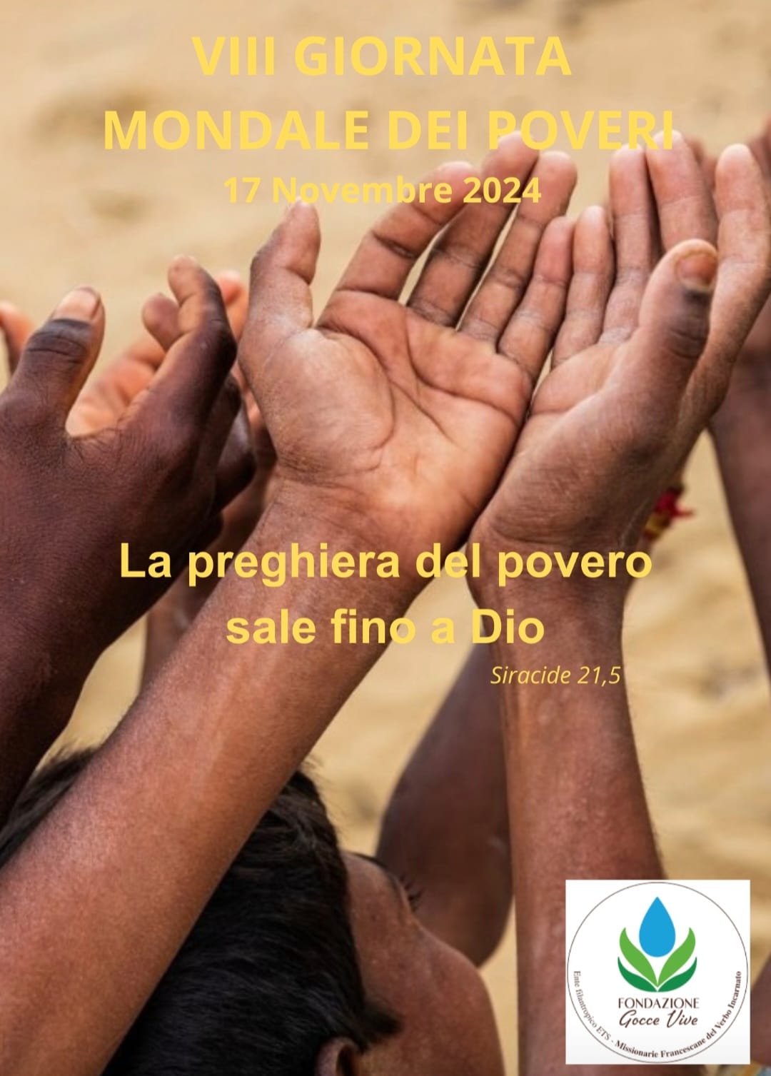 Il Messaggio di Papa Francesco inizia così: “La preghiera del povero sale fino a Dio (cfr Sir 21,5). Nell’anno dedicato alla preghiera, in vista del Giubileo Ordinario 2025, questa espressione della sapienza biblica è quanto mai appropriata per prepararci all’VIII Giornata Mondiale dei Poveri, che ricorrerà il 17 novembre… La speranza cristiana abbraccia anche la certezza che la nostra preghiera giunge fino al cospetto di Dio; ma non qualsiasi preghiera: la preghiera del povero!