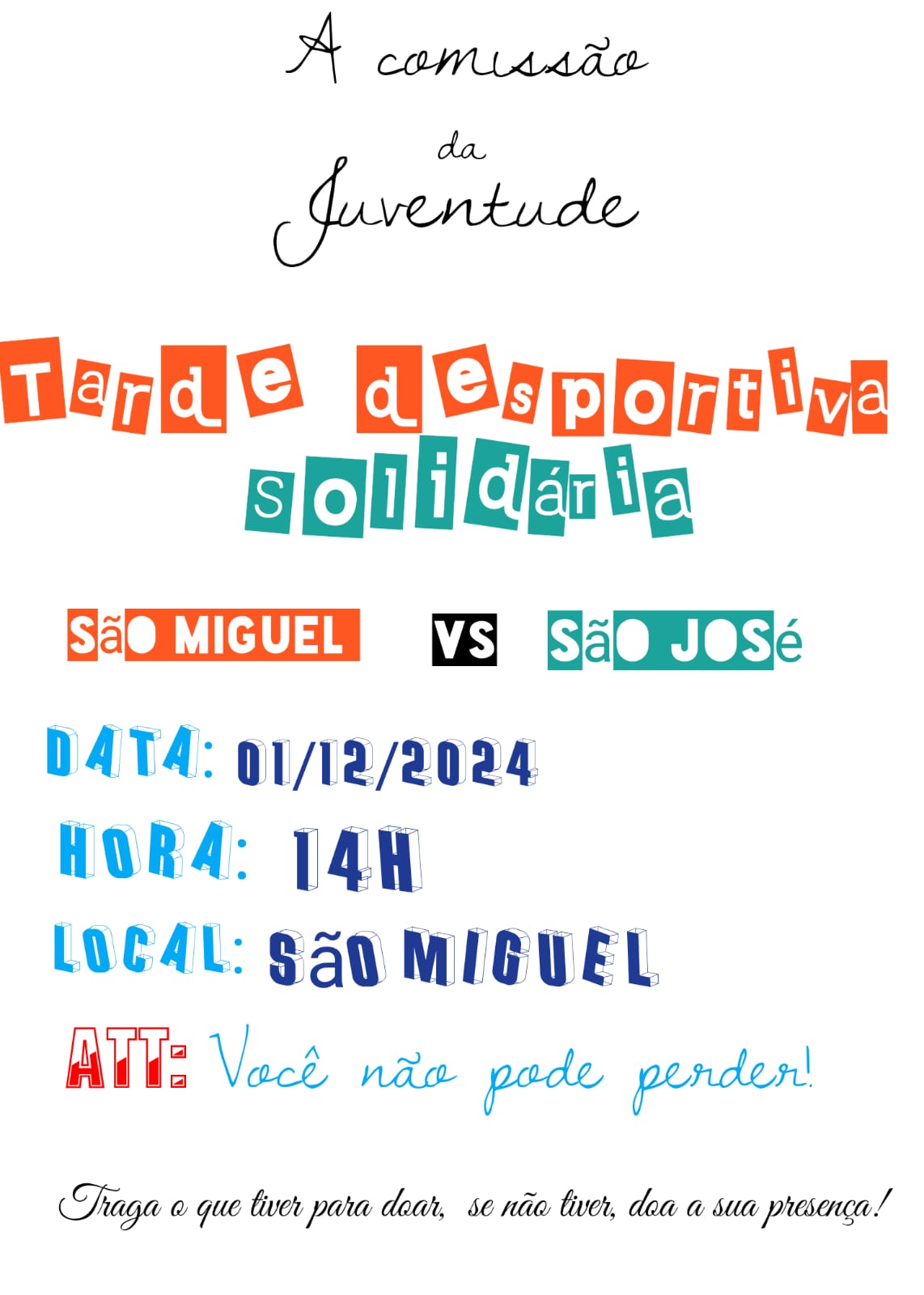 I giovani di due Cappelle della Santissima Trinità (Diocesi di Vianna) hanno proposto un pomeriggio ricreativo. “Azul: São Miguel; Amarelo (giallo) São José”. Tutti hanno potuto dare il meglio di sé stessi (aspetto fondamentale nello sport) e hanno gareggiato con tutte le forze.